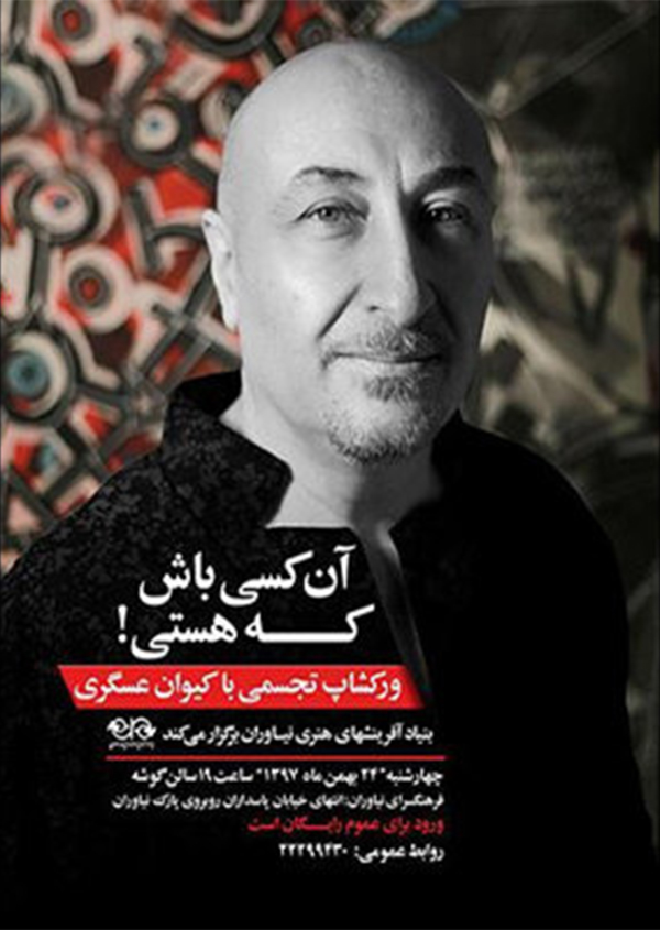 ورک شاپ تجسمی «آن کسی باش که هستی»به همت بنیاد آفرینش‎های هنری نیاوران، چهارشنبه ۲۴ بهمن ساعت ۱۹ در سالن گوشه فرهنگ‌سرای نیاوران برگزار خواهد شد. شرکت در این کارگاه برای کلیه علاقه‌مندان آزاد است.