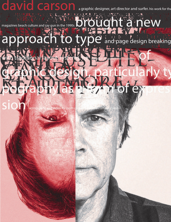 دیوید کارسون برای طراحی نوآورانه در مجله "ری گان" و استفاده از تایپوگرافی تجربی شناخته شده است.