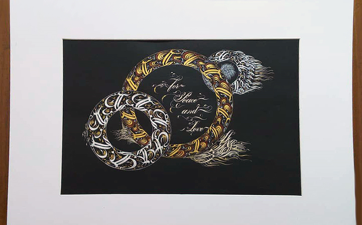 عاطفه نوشاوند هنرمند کشورمان به ترکیب خط شکسته فارسی با خوشنویسی لاتین پرداخته که حاصل آن در نمایشگاه «و این صدای سخن عشق است» به تماشا گذاشته می‌شود.