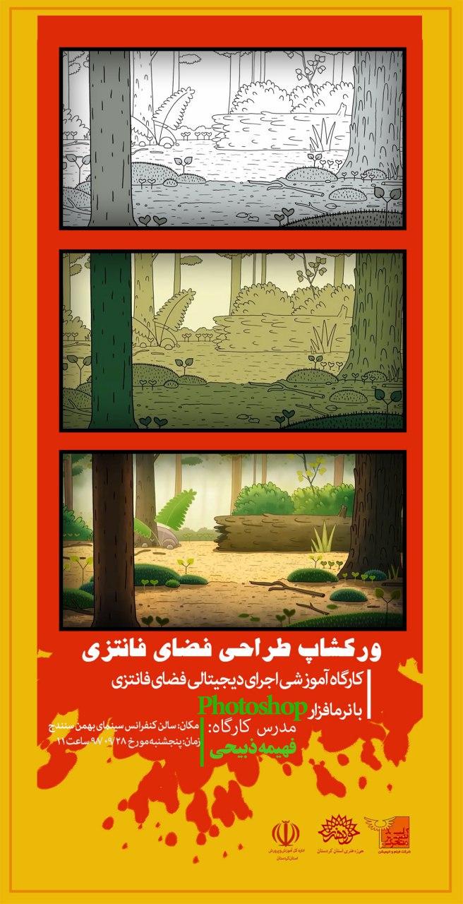 به گزارش روابط عمومی حوزه هنری استان کردستان ، شیلان برهانی مسئول واحد آموزش و پژوهش حوزه هنری کردستان ضمن اعلام این خبر افزود: در راستای ارتقای سطح توان هنرجویان و علاقه مندان رشته های تصویرسازی، انیمیشن، کارتون و کاریکاتور در خصوص شیوه استفاده از نرم افزار فتوشاپ در مراحل شکل گیری فضای فانتزی با حضور فهیمه ذبیحی سلطانی  از هنرمندان و مدرسین حوزه هنری و دانشگاه های استان با اجرای یک اثر به صورت حضوری مراحل شکل گیری فضای فانتزی در محل سالن اندیشه پردیس سینمایی بهمن سنندج توضیح داده شد.
