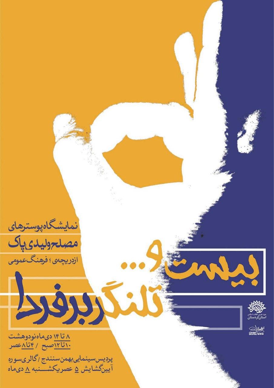 با حمایت حوزه هنری کردستان نمایشگاه انفرادی پوستر هنرمند سنندجی "مصلح ولیدی پاک"با محوریت کاهش آسیب های اجتماعی از ۸تا ۱۴ دیماه در گالری سوره پردیس سینمایی بهمن سنندج در معرض نمایش عموم قرار می گیرد.